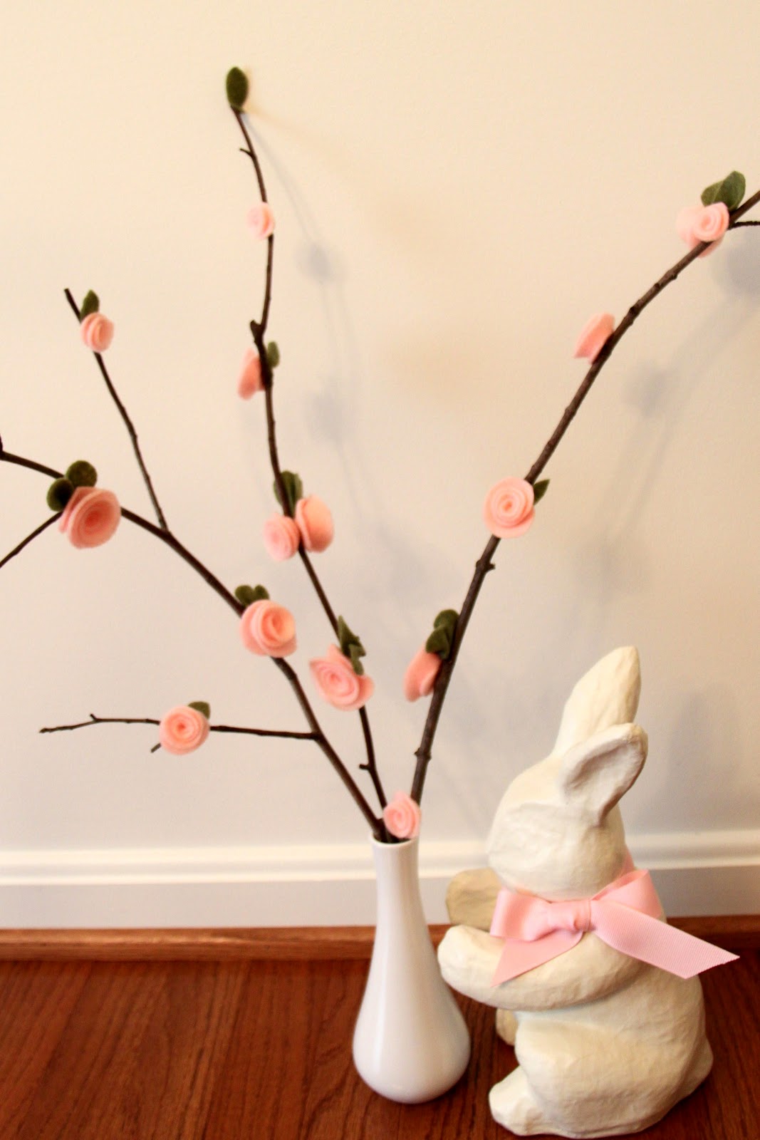 This was inspired by the flowers on Too Much Time, she has a great tutorial on how to do them with paper. We just changed it a little and did it with felt.