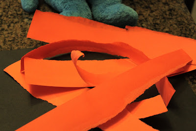 - scraps of orange, blue, black, and brown (our brown stem is from a corrugated box)