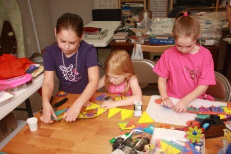 Grandma Lisa has been planning the camp for a while now, so she has had time to shop sales and gather the materials for all the activities — not to mention she has a considerable craft room stash from which to pull tools and supplies! Biggest tip:  plan many activities and be flexible.  Some activities she thought would be quick, the girls wanted to spend lots of time on (like making cards).  While, some activities did not hold their attention as well and were shortened as the girls lost interest.  Overall, it was a HUGE success!