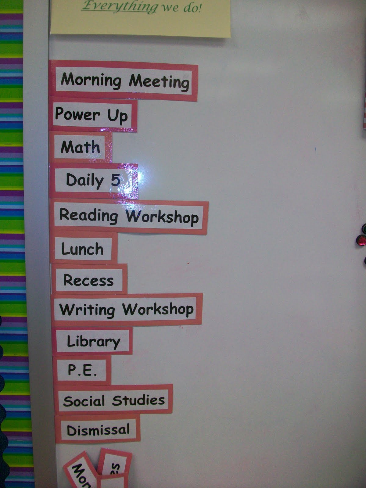 They usually have something like this up in their classrooms. {Thanks Lisa – this is from a real 2nd grade classroom.} Or maybe you adopted this schedule from Bernadette. |
