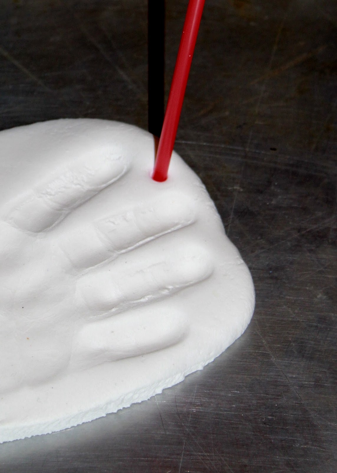 - Stretch out their little fingers, put the base of their palm into the clay and then press each finger in quickly. If you mess up, roll it up and start again. Model Magic is very forgiving.